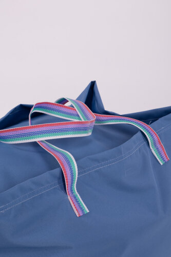 Zawartość torby zamykana jest podłużną pokrywą, co zapewnia minimalny kontakt pracowników z brudną bielizną.