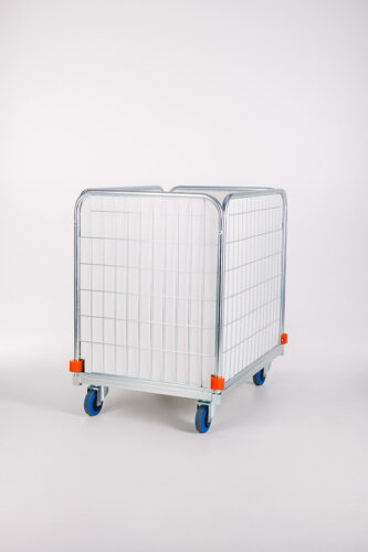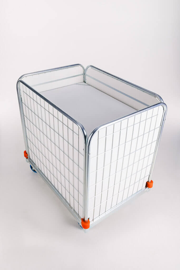 Wózek pralniczy z ruchomym (podnoszonym) dnem do transportu mokrej i ciężkiej bielizny (prania)